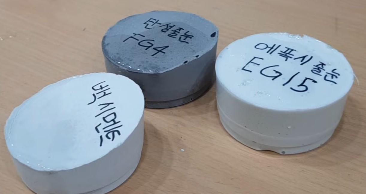 폴리머 성분이 들어가 있는 탄성줄눈이 있고 시멘트로만 되어 있는 줄눈제가 있고 그다음 1액형 줄눈제, 2액형 줄눈제, 에폭시 줄눈제가 있습니다.