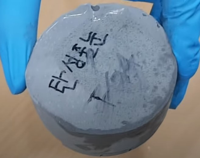 부서진 백시멘트와 탄성줄눈의 단면을 비교해 보면 자세히 봤을 시 규사가 백시멘트가 조금더 크고 거칠다는 것을 알 수 있습니다. 실제 줄누 시공 시 지금 이미지에서 보이는 탄성줄눈의 기포는 없다는 것을 참고해 주십시오.