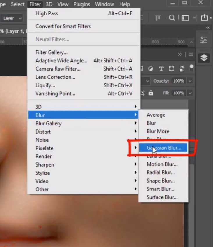 4. [Fliter]-[Blur]-[Gaussian Blur] / [필터]-[블러]-[가우시안 블러]를 선택합니다.