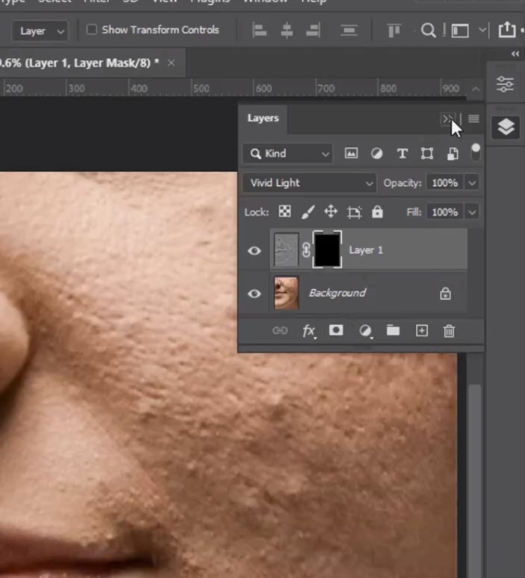2. 블랜딩 모드를 [Vivid Light / 선명한 라이트]로 변경한후 [Ctrl+I]를 눌러 반전시킵니다.